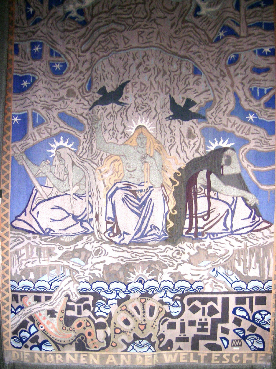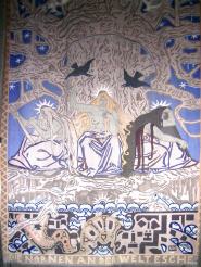 August Wilckens, geb. am 25.06.1870 - gest. 1939, berühmter Jugendstil-Designer und Maler. Fertigte den großen Jugendstilgobelin der Nibelungenhalle "Die Nornen an Weltenesche". Ein weiterer Teppich dieser Art befindet sich heute im Schleswig-Holsteinischen Landesmuseum in Kiel. Um dieses Bild zu vergrößern bitte auf das Bild klicken.
